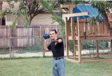 Tossing a football around in the back yard at Lee Jackson's house