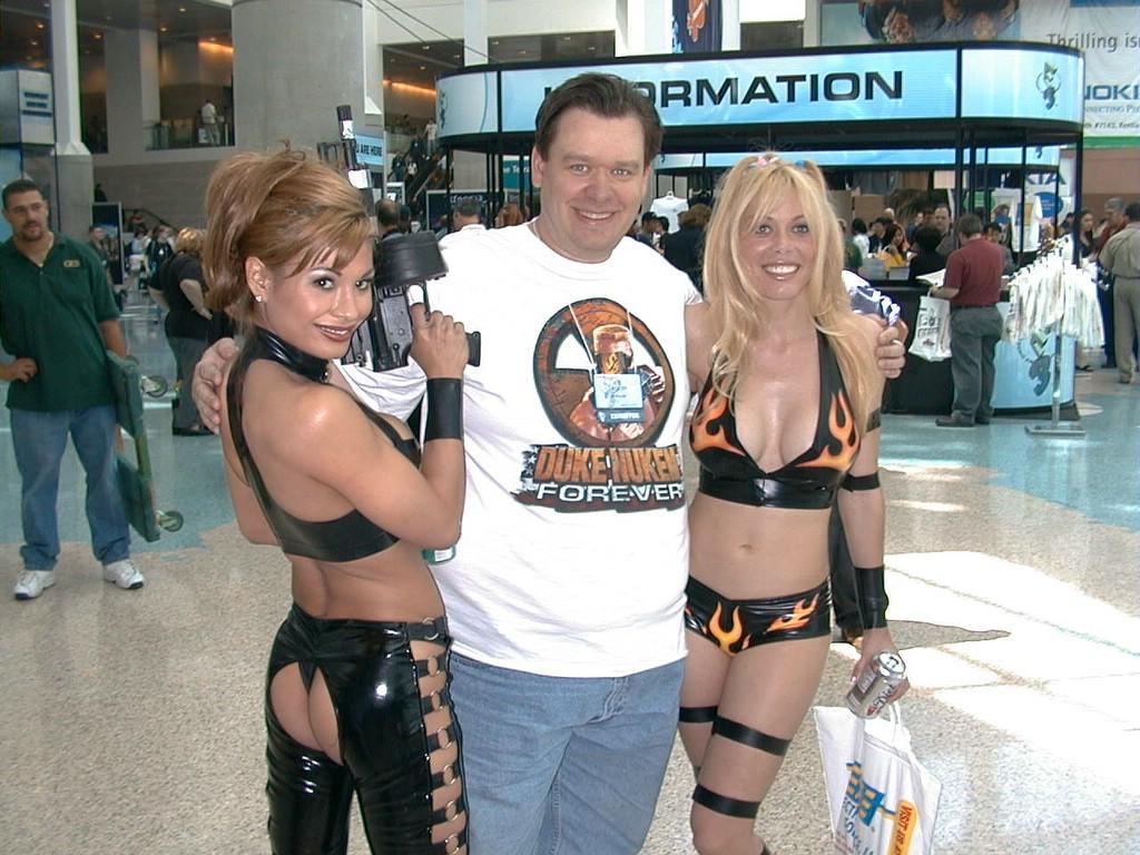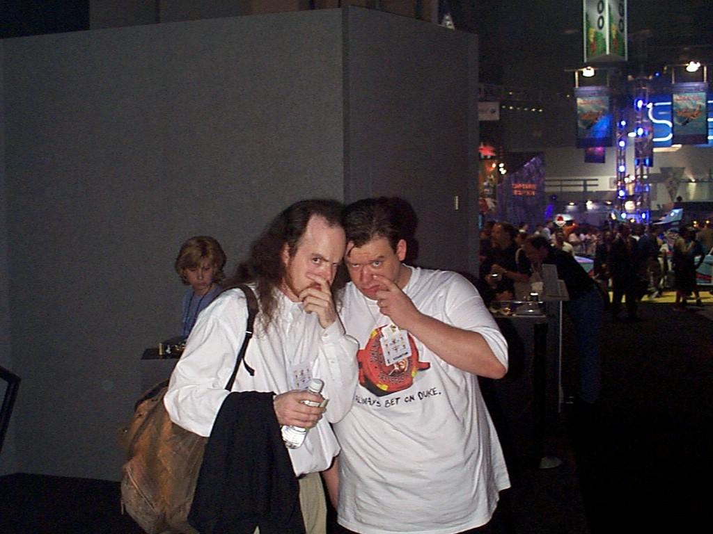 -my last E3 with 3D Realms - for just a few demos, we had a real trick up our sleeve - we did the demo for the press and talked a lot about cool multiplayer stuff and then for a few (I think we only did it two or three times), we had the press sit down and we spun a computer screen towards them and showed them that we could deathmatch right there - that there was game play in addition to the demo - that really wowed them!