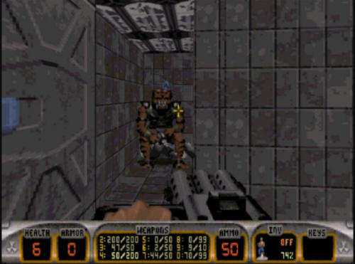 Simply put, no first person shooter can touch Duke Nukem 3D for character, charm, humour, absurdity, and most of all, interactivity. Just about everything in Duke Nukem 3D is breakable, shootable, switchable, or explodable: toilets flush, mirrors reflect, light switches work...