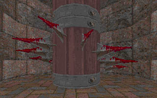 yourself to the side of the column. Just as the spear heads are high, crawl through to the