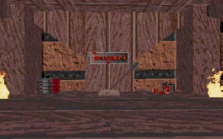 to west and west to east. The door has bloody spears on the sides of it so be careful. You