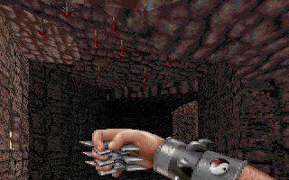 the ceiling. You'll notice a bunch of red spears sticking down from the ceiling. When you