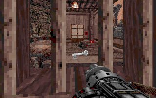 window and a door. Out of the window Ninjas are ready to attack you right away. Shoot them