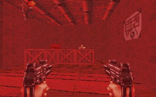 there are a Railgun and a medkit. Looking out of the window in this room, you can see a