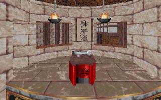 the large door and get back into the room with the gong. Turn west and go up the ramp and