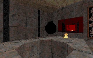 door, don't jump onto the bobbing columns in the lava. Instead, turn to your right and