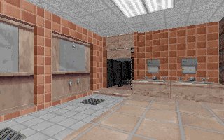shower room, there is a full length mirror to the left of the sinks that is guarded by