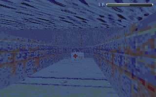 door moves to the open position, you can see an opening. Jump into the opening and blast