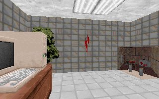 card from the cafeteria, and blow up the barrels in the hallway to the north, you'll