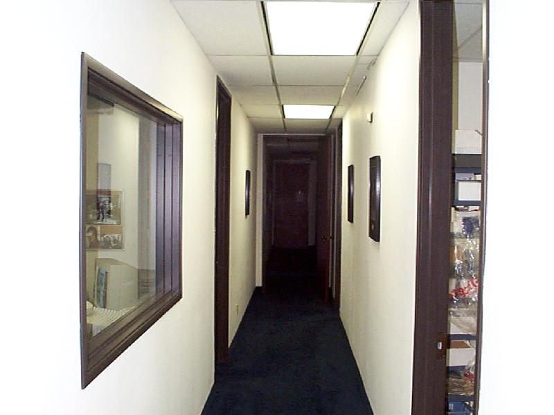 This is a hallway in our offices. On your left is a window that looks in to our Technical Support Department, and on your right is the door to Lee Jackson's Office.