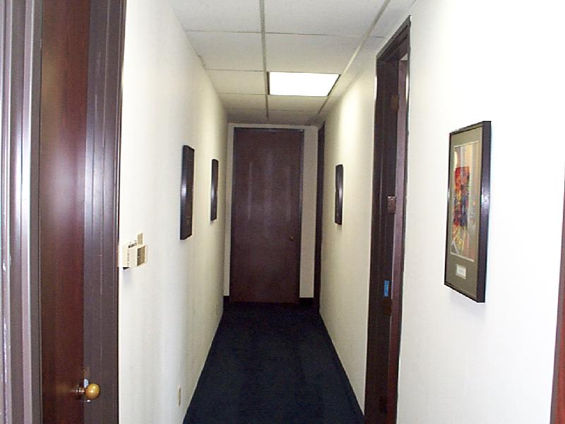 This is a hallway in our offices. On your left is our employee lounge, and to your right is Scott Miller's Office.