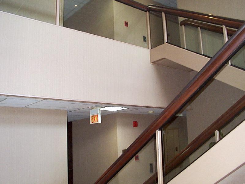 This is the lobby of our Office Building. There's really not much to see here, so you can go upstairs, which is where our offices are. You can either take the stairs, or take the elevator to get there.